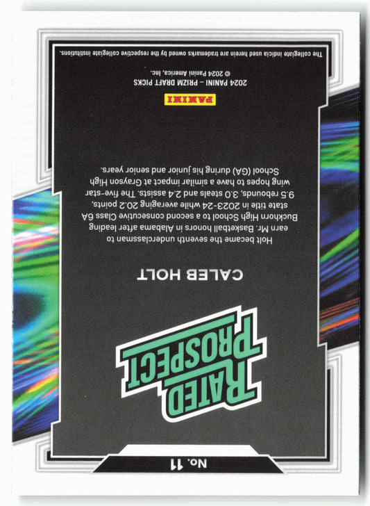 This is a nice example of a 2024 Panini Prizm Draft Picks #11 Caleb Holt Rated Prospect Other important information about this card:In 2024 Caleb Holt played for the .Please...