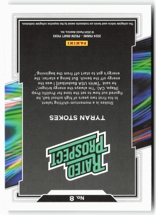 This is a nice example of a 2024 Panini Prizm Draft Picks #8 Tyran Stokes Rated Prospect Other important information about this card:In 2024 Tyran Stokes played for the .Please...