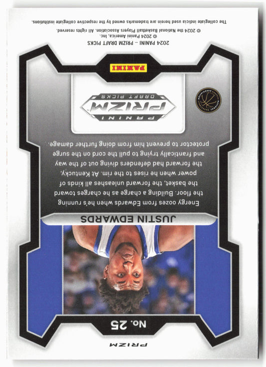 This is a nice example of a 2024 Panini Prizm Draft Picks #25 Justin Edwards Prizms Orange Ice Other important information about this card:In 2024 Justin Edwards played for the...