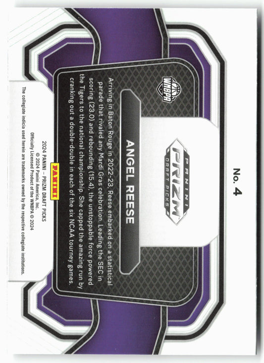 This is a nice example of a 2024 Panini Prizm Draft Picks #4 Angel Reese Campus Legends Other important information about this card:In 2024 Angel Reese played for the LSU...