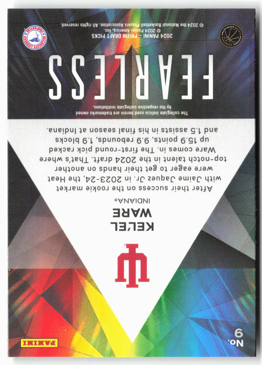 This is a nice example of a 2024 Panini Prizm Draft Picks #9 Kel'el Ware Fearless Other important information about this card:In 2024 Kel'el Ware played for the Indiana Hoosiers.Please...