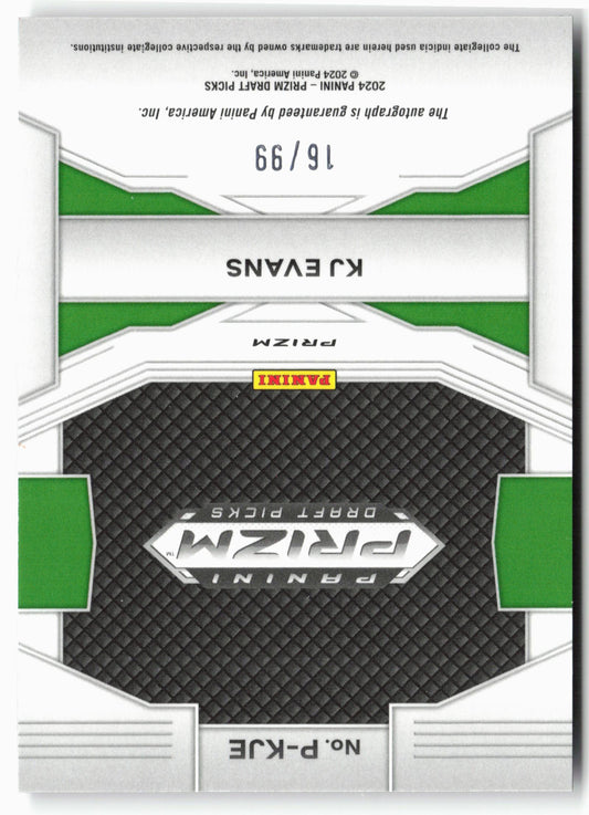 This is a nice example of a 2024 Panini Prizm Draft Picks #P-KJE KJ Evans Penmanship Prizms Purple Ice Other important information about this card:SN,AUIn 2024 KJ Evans played for...