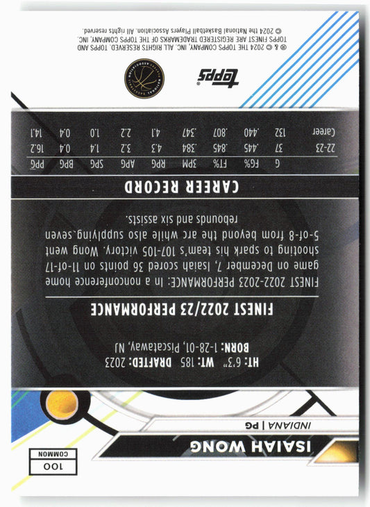 This is a nice example of a 2023-24 Finest #100 Isaiah Wong Other important information about this card:RCIn 2023 Isaiah Wong played for the Indiana Pacers.Please check out our other...