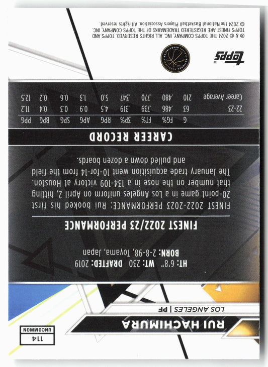 This is a nice example of a 2023-24 Finest #114 Rui Hachimura Other important information about this card:In 2023 Rui Hachimura played for the Los Angeles Lakers.Please check out our...
