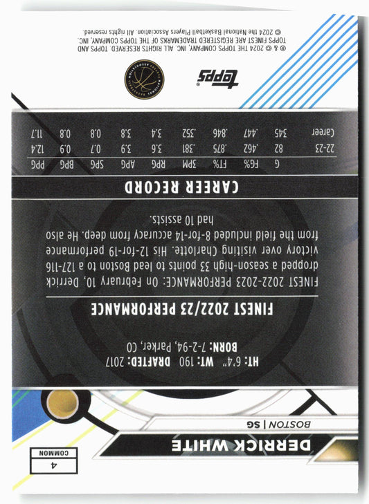This is a nice example of a 2023-24 Finest #4 Derrick White Other important information about this card:In 2023 Derrick White played for the Boston Celtics.Please check out our other...