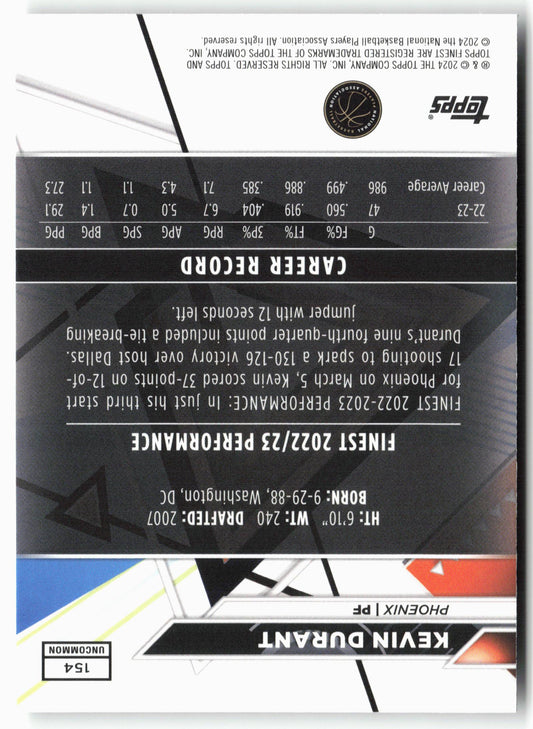 This is a nice example of a 2023-24 Finest #154 Kevin Durant Checkerboard Refractors Other important information about this card:In 2023 Kevin Durant played for the Phoenix Suns.Please check out...
