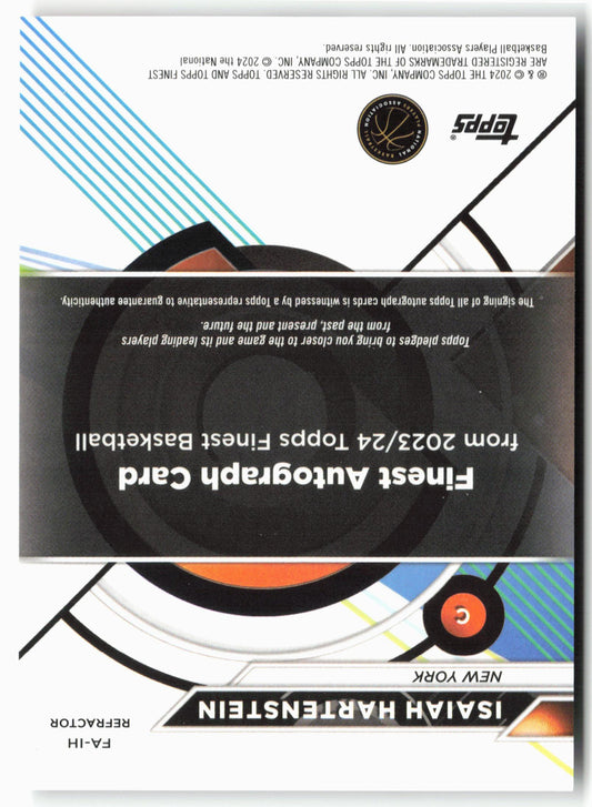 This is a nice example of a 2023-24 Finest #FA-IH Isaiah Hartenstein Finest Autographs Refractors Other important information about this card:In 2023 Isaiah Hartenstein played for the New York Knicks.Please...