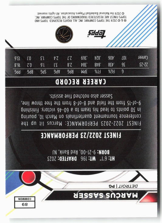 This is a nice example of a 2023-24 Finest #89 Marcus Sasser Checkerboard Refractors Other important information about this card:RCIn 2023 Marcus Sasser played for the Detroit Pistons.Please check out...