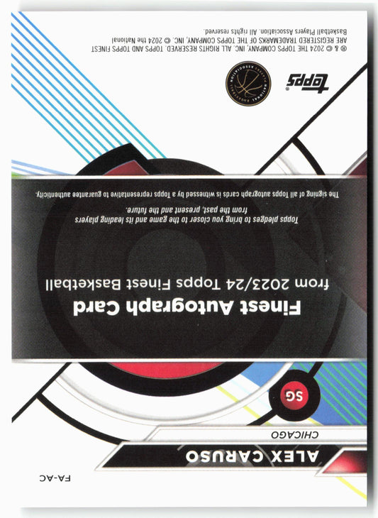 This is a nice example of a 2023-24 Finest #FA-AC Alex Caruso Finest Autographs Other important information about this card:In 2023 Alex Caruso played for the Chicago Bulls.Please check out...