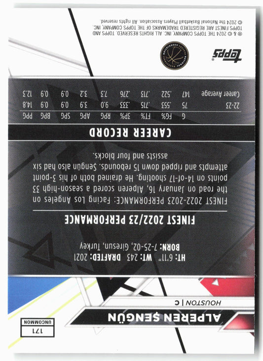This is a nice example of a 2023-24 Finest #171 Alperen Sengun Checkerboard Refractors Other important information about this card:In 2023 Alperen Sengun played for the Houston Rockets.Please check out...