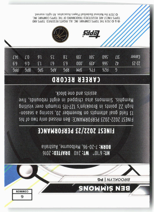 This is a nice example of a 2023-24 Finest #6 Ben Simmons Other important information about this card:In 2023 Ben Simmons played for the Brooklyn Nets.Please check out our other...