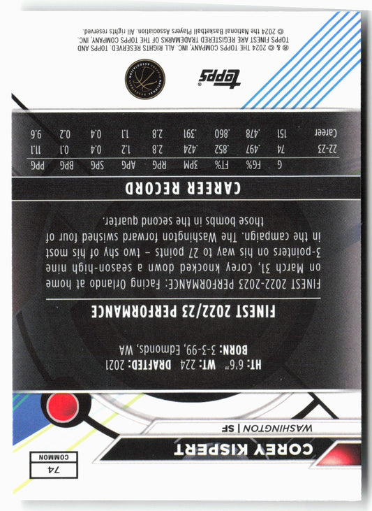 This is a nice example of a 2023-24 Finest #74 Corey Kispert Other important information about this card:In 2023 Corey Kispert played for the Washington Wizards.Please check out our other...