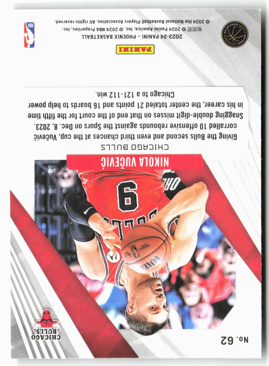 This is a nice example of a 2023-24 Panini Phoenix #62 Nikola Vucevic Phoenix Red Ice Other important information about this card:In 2023 Nikola Vucevic played for the Chicago Bulls.Please...