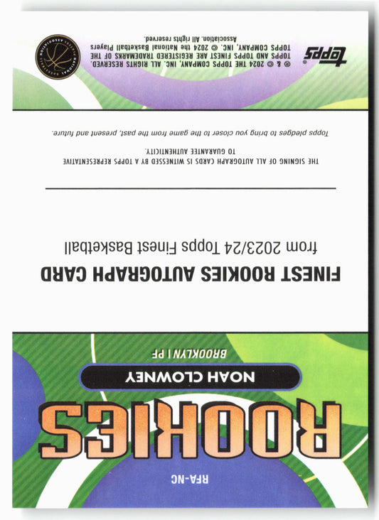 This is a nice example of a 2023-24 Finest #RFA-NC Noah Clowney Rookie Finest Autographs Other important information about this card:In 2023 Noah Clowney played for the Brooklyn Nets.Please check...