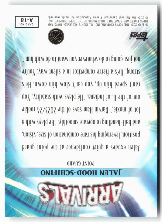 This is a nice example of a 2023-24 Finest #A-18 Jalen Hood-Schifino Arrivals Other important information about this card:In 2023 Jalen Hood-Schifino played for the Los Angeles Lakers.Please check out...
