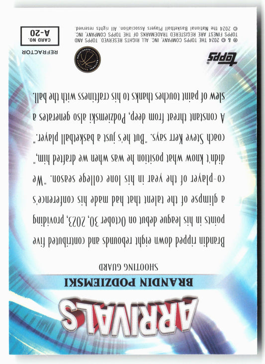 This is a nice example of a 2023-24 Finest #A-20 Brandin Podziemski Arrivals Refractor Other important information about this card:In 2023 Brandin Podziemski played for the Golden State Warriors.Please check...