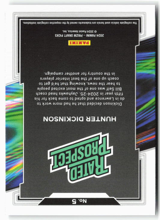 This is a nice example of a 2024 Rated Prospect # Hunter Dickinson Rated Prospect Other important information about this card:In 2024 Hunter Dickinson played for the Kansas Jayhawks.Please check...