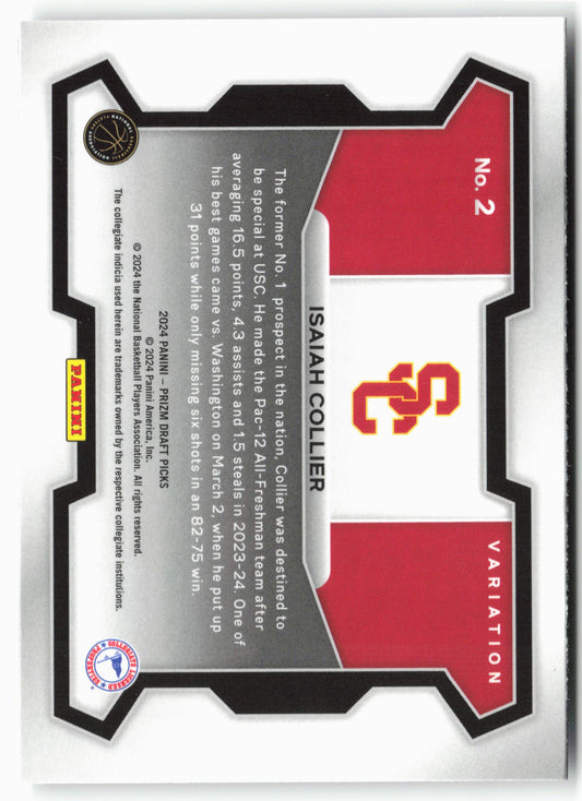 This is a nice example of a 2024 Panini Prizm Draft Picks #2 Isaiah Collier Other important information about this card:In 2024 Isaiah Collier played for the USC Trojans.Please check...