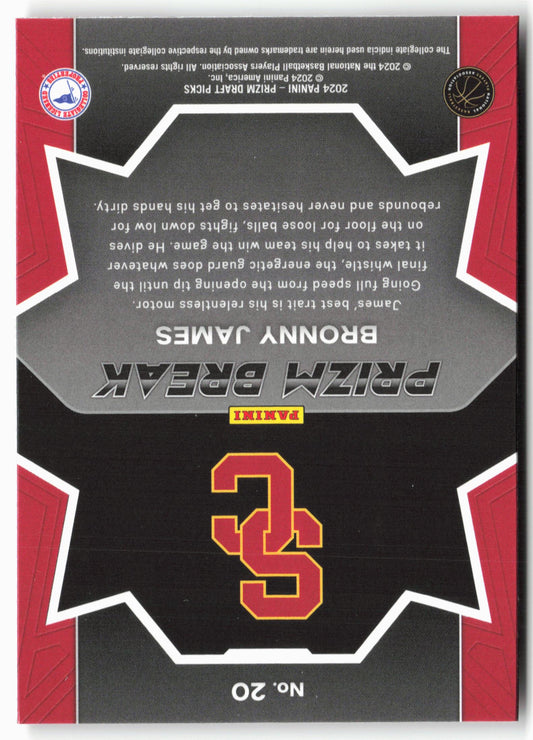 This is a nice example of a 2024 Panini Prizm Draft Picks #20 Bronny James Jr. Prizm Break Other important information about this card:In 2024 Bronny James Jr. played for...