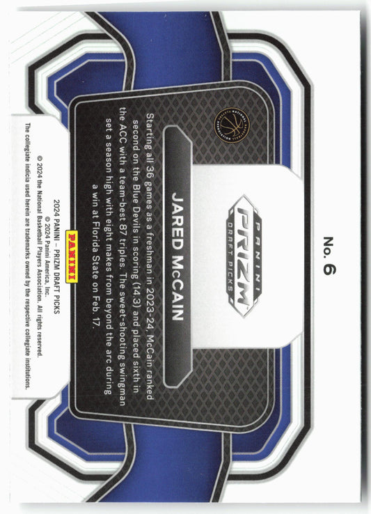 This is a nice example of a 2024 Panini Prizm Draft #6 Jared McCain Campus Legends Other important information about this card:In 2024 Jared McCain played for the Duke.Please check...