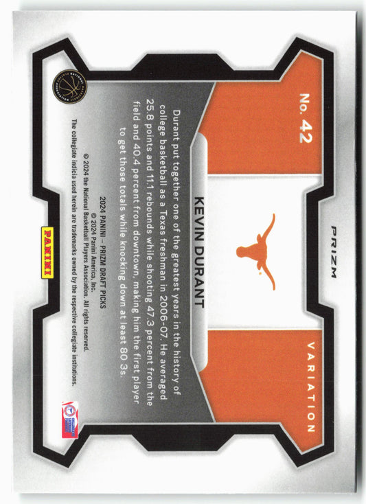 This is a nice example of a 2024 Panini Prizm Draft Picks #42 Kevin Durant Green Prizms Other important information about this card:In 2024 Kevin Durant played for the Texas...