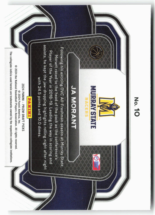This is a nice example of a 2024 Panini Prizm Draft #10 Ja Morant Campus Legends Other important information about this card:In 2024 Ja Morant played for the Murray.Please check...