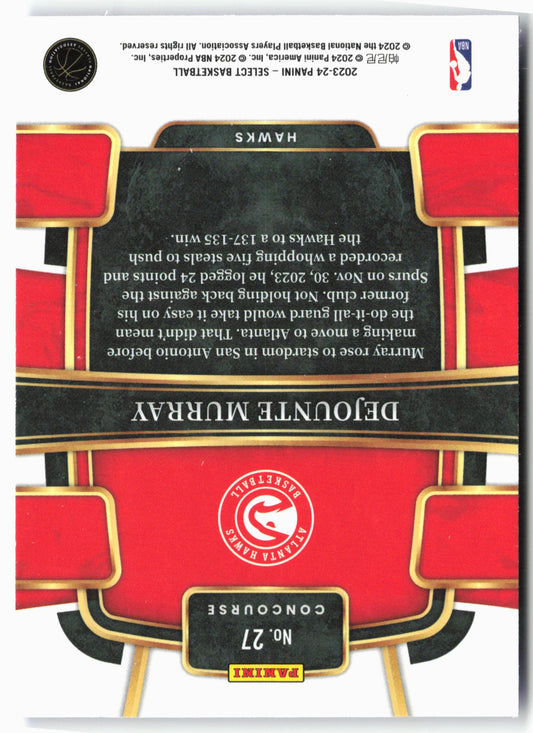 This is a nice example of a 2023-24 Panini Select #27 Dejounte Murray Blue (Retail Base) Other important information about this card:In 2023 Dejounte Murray played for the Atlanta Hawks.Please...