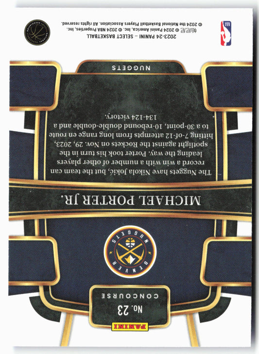 This is a nice example of a 2023-24 Panini Select #23 Michael Porter Jr. Blue (Retail Base) Other important information about this card:In 2023 Michael Porter Jr. played for the...