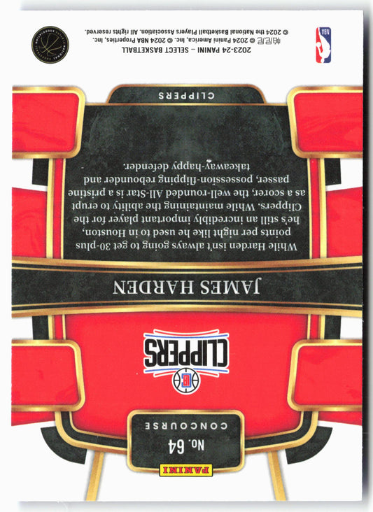This is a nice example of a 2023-24 Panini Select #64 James Harden Blue (Retail Base) Other important information about this card:In 2023 James Harden played for the Los Angeles...