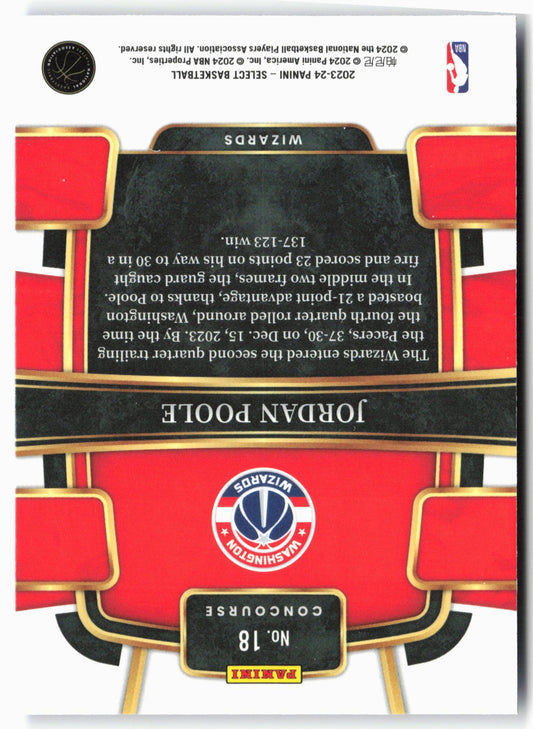 This is a nice example of a 2023-24 Panini Select #18 Jordan Poole Blue (Retail Base) Other important information about this card:In 2023 Jordan Poole played for the Washington Wizards.Please...
