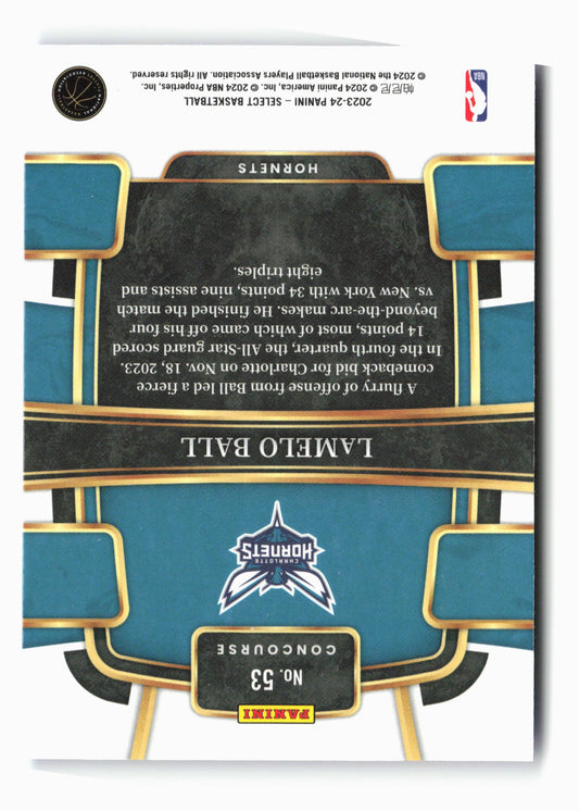 This is a nice example of a 2023-24 Panini Select #53 LaMelo Ball Blue (Retail Base) Other important information about this card:In 2023 LaMelo Ball played for the Charlotte Hornets.Please...