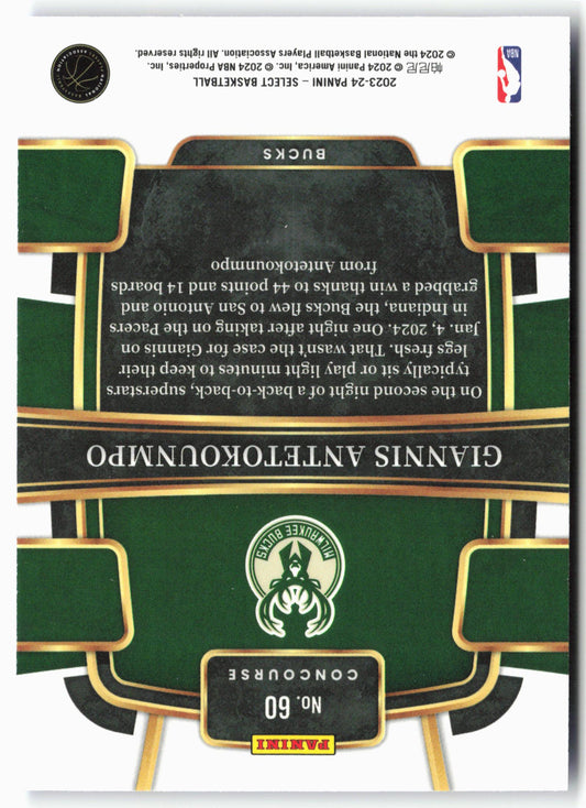 This is a nice example of a 2023-24 Panini Select #60 Giannis Antetokounmpo Blue (Retail Base) Other important information about this card:In 2023 Giannis Antetokounmpo played for the Milwaukee Bucks.Please...