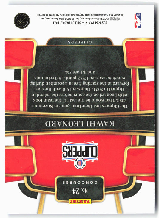 This is a nice example of a 2023-24 Panini Select #24 Kawhi Leonard Blue (Retail Base) Other important information about this card:In 2023 Kawhi Leonard played for the Los Angeles...