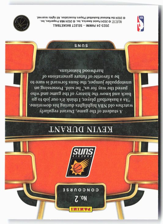 This is a nice example of a 2023-24 Panini Select #2 Kevin Durant Blue (Retail Base) Other important information about this card:In 2023 Kevin Durant played for the Phoenix Suns.Please...