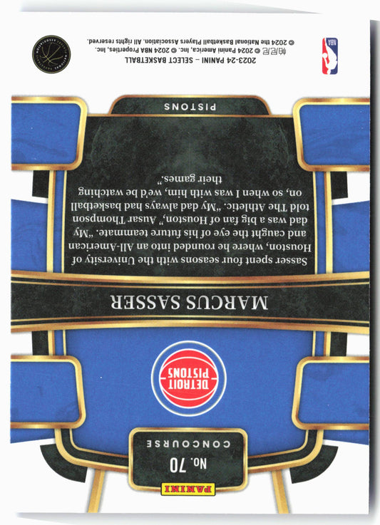 This is a nice example of a 2023-24 Panini Select #70 Marcus Sasser Blue (Retail Base) Other important information about this card:RCIn 2023 Marcus Sasser played for the Detroit Pistons.Please...