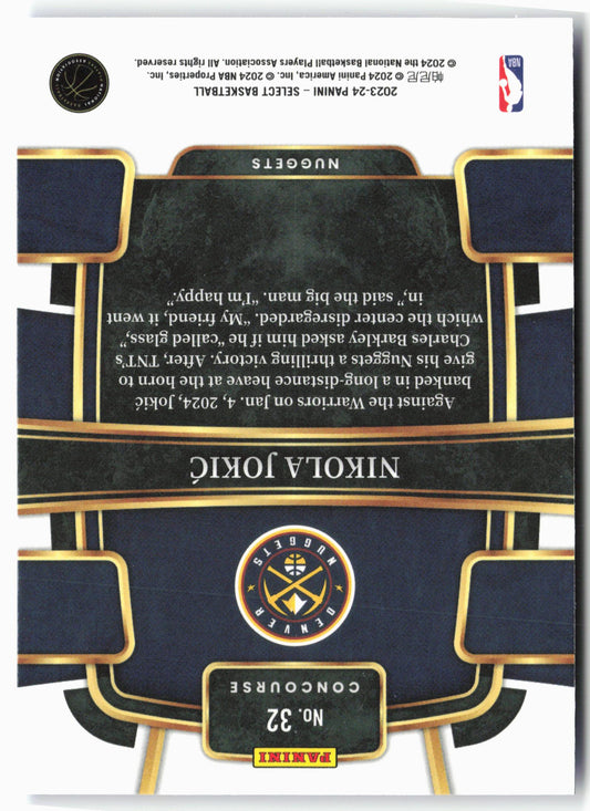 This is a nice example of a 2023-24 Panini Select #32 Nikola Jokic Blue (Retail Base) Other important information about this card:In 2023 Nikola Jokic played for the Denver Nuggets.Please...