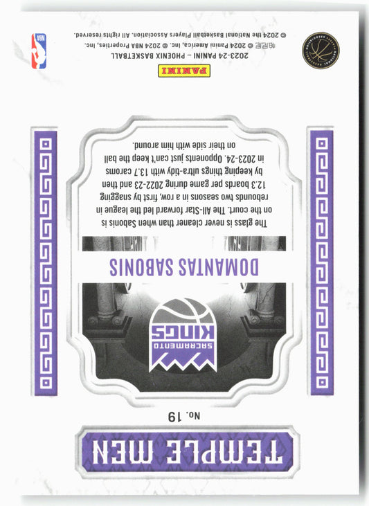 This is a nice example of a 2023-24 Panini Phoenix #19 Domantas Sabonis Temple Men Other important information about this card:In 2023 Domantas Sabonis played for the Sacramento Kings.Please check...