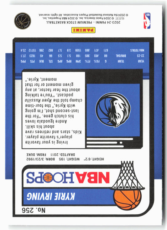 This is a nice example of a 2023-24 Panini Premium Stock #256 Kyrie Irving Other important information about this card:In 2023 Kyrie Irving played for the Dallas Mavericks.Please check out...
