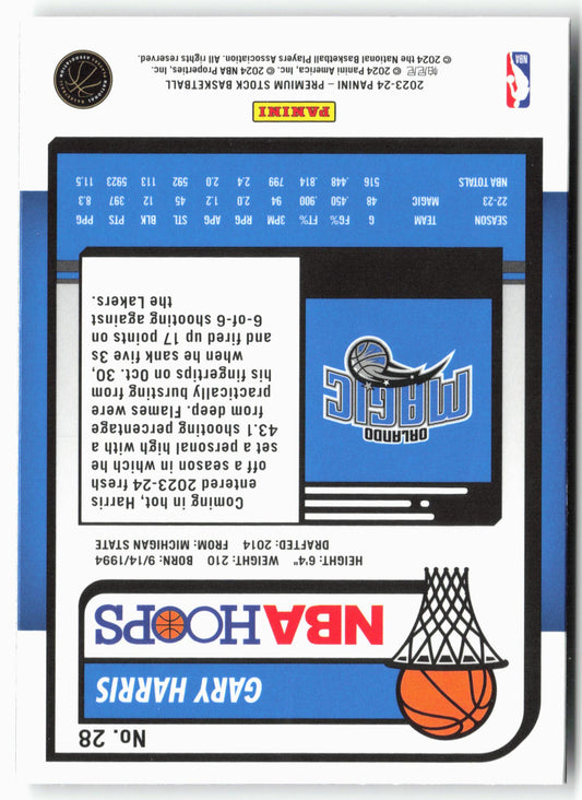 This is a nice example of a 2023-24 Panini Premium Stock #28 Gary Harris Other important information about this card:In 2023 Gary Harris played for the Orlando Magic.Please check out...