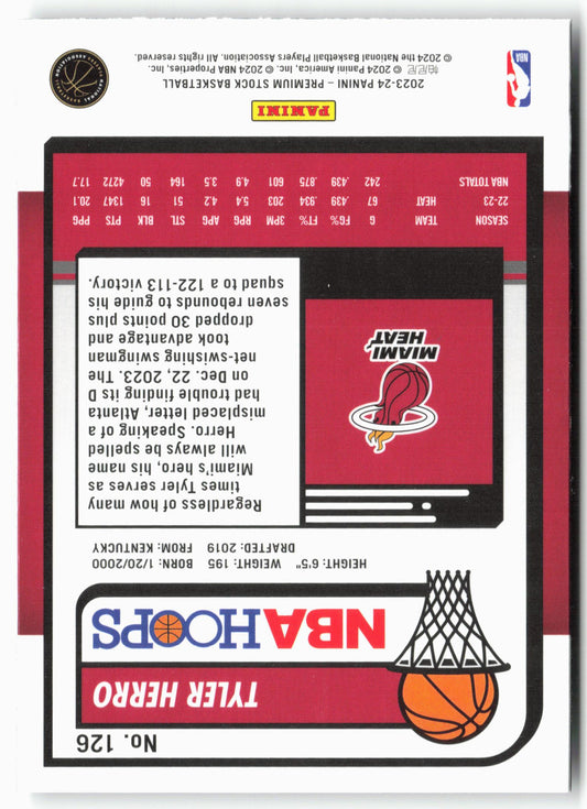 This is a nice example of a 2023-24 Panini Premium Stock #126 Tyler Herro Other important information about this card:In 2023 Tyler Herro played for the Miami Heat.Please check out...