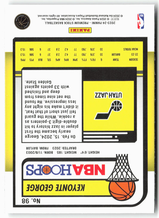 This is a nice example of a 2023-24 Panini Premium Stock #98 Keyonte George Other important information about this card:In 2023 Keyonte George played for the Utah Jazz.Please check out...