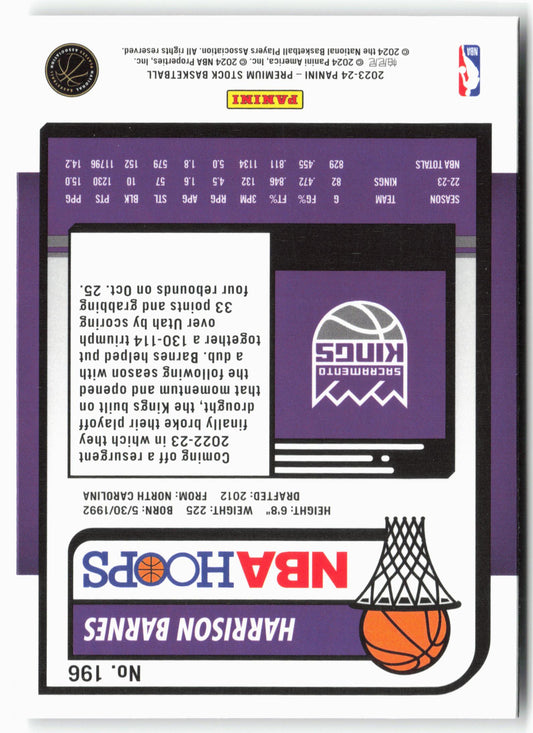 This is a nice example of a 2023-24 Panini Premium Stock #196 Harrison Barnes Other important information about this card:In 2023 Harrison Barnes played for the Sacramento Kings.Please check out...