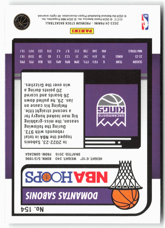 This is a nice example of a 2023-24 Panini Premium Stock #154 Domantas Sabonis Other important information about this card:In 2023 Domantas Sabonis played for the Sacramento Kings.Please check out...
