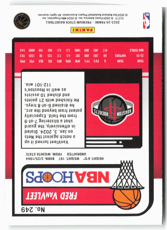 This is a nice example of a 2023-24 Panini Premium Stock #249 Fred VanVleet Other important information about this card:In 2023 Fred VanVleet played for the Houston Rockets.Please check out...