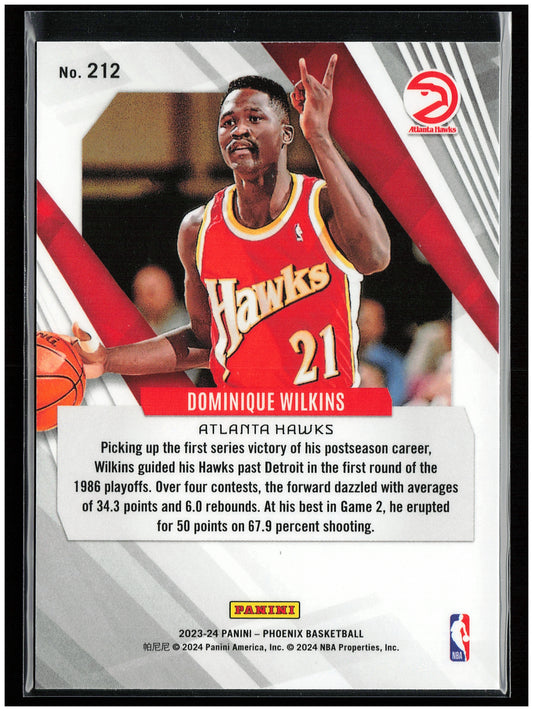 This is a nice example of a 2023-24 Panini Phoenix #212 Dominique Wilkins Other important information about this card:In 2023 Dominique Wilkins played for the Atlanta Hawks.Please check out our...