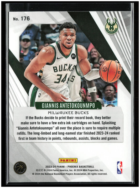 This is a nice example of a 2023-24 Panini Phoenix #176 Giannis Antetokounmpo Other important information about this card:In 2023 Giannis Antetokounmpo played for the Milwaukee Bucks.Please check out our...