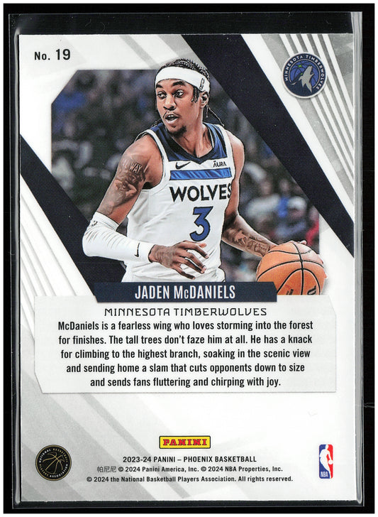 This is a nice example of a 2023-24 Panini Phoenix #19 Jaden McDaniels Other important information about this card:In 2023 Jaden McDaniels played for the Minnesota Timberwolves.Please check out our...