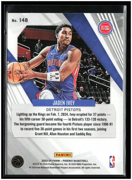 This is a nice example of a 2023-24 Panini Phoenix #148 Jaden Ivey Other important information about this card:In 2023 Jaden Ivey played for the Detroit Pistons.Please check out our...