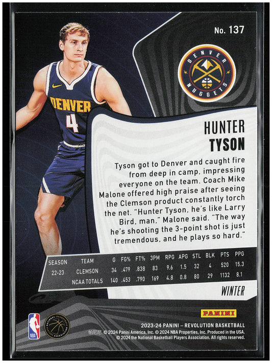 This is a nice example of a 2023-24 Panini Revolution #137 Hunter Tyson Winter Other important information about this card:RCIn 2023 Hunter Tyson played for the Denver Nuggets.Please check out...