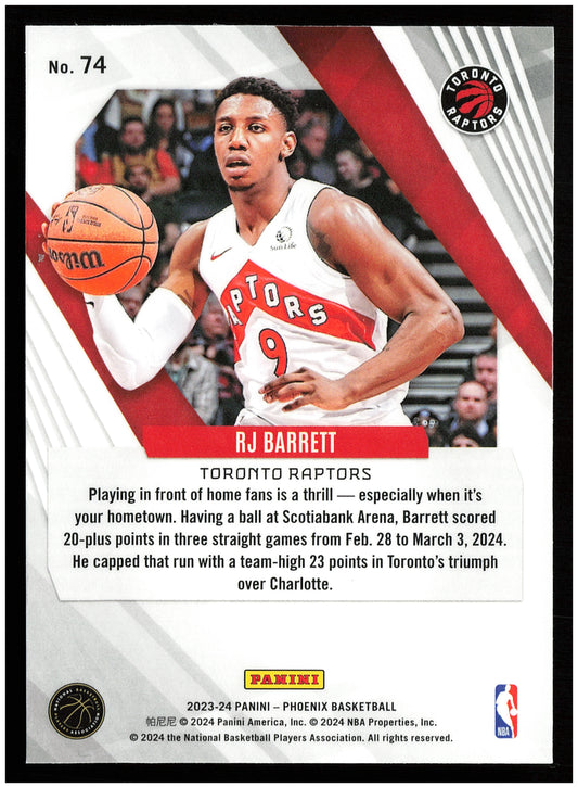 This is a nice example of a 2023-24 Panini Phoenix #74 RJ Barrett Phoenix Teal Lazer Other important information about this card:In 2023 RJ Barrett played for the Toronto Raptors.Please...